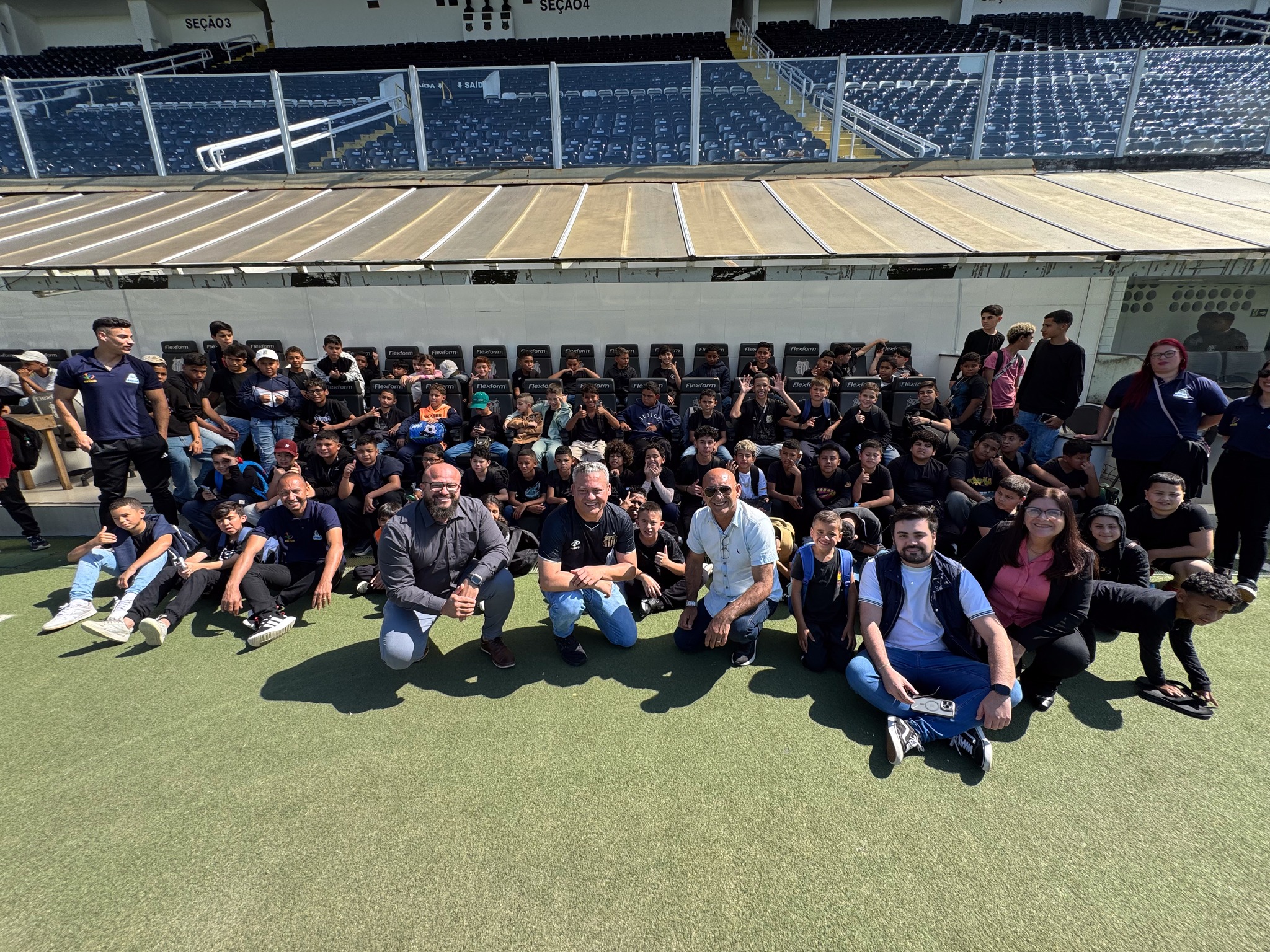 Um dia inesquecível para as crianças de Juquiá! Nesta última quinta-feira (14), cerca de 90 crianças e adolescentes de Juquiá viveram um momento único: realizaram o sonho de conhecer a Vila Belmiro, estádio do Santos Futebol Clube